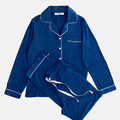 - Conjunto de camisa y pantalón pijamero en tejido de Bambú con detalles de vivo en color.