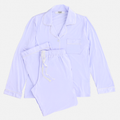 El Pijama Mariana combina comodidad y estilo en cada detalle. Su pantalón holgado con cintura elástica se adapta perfectamente a tu cuerpo sin ajustar, mientras que la camisa de corte clásico con cuello y puños anchos aporta un toque elegante y atemporal. Las costuras francesas garantizan una confección delicada y duradera, y su textura suave te envuelve en una sensación de bienestar y relajación que transforma tu descanso en una experiencia placentera.